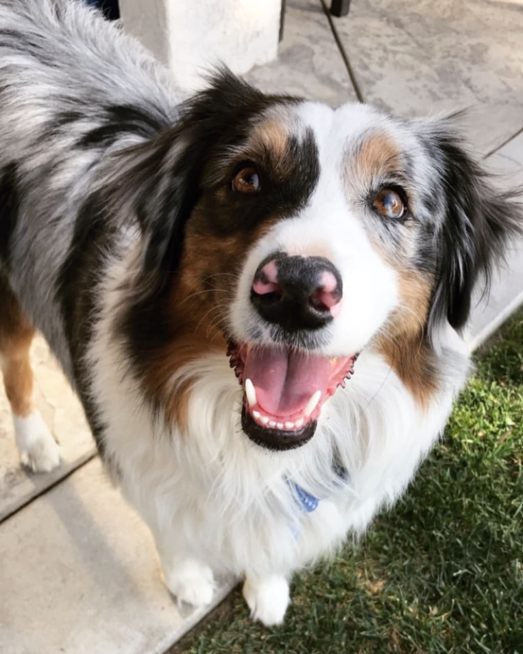 Two years ago my family and I moved to a new house in Southern California with 15,000 square feet of flat land. We decided it would be a wonderful idea to get a large dog since we have land for him or her to run around. We wanted to buy an Australian Shepherd Blue Merle male because my dad had one when he was a kid and they are truly great dogs. First, we researched information about that breed such as what their temperaments usually are around people and what it is like to own one. Then we were on the search for the perfect dog. Finally, after a month of searching through Facebook ads, we found a breeder that had a Blue Merle Aussie male for sale. So we drove two hours to meet all of the Aussies and chose the perfect puppy for our family.