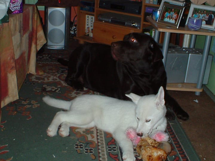 Needless to say I was so happy and we named the pup Brandie, after a suggestion from my grandad. After a couple of years I was getting busier and Brandie was spending more time on her own during the day. This really didn't bother Brandie as she kinda loved being able to chill in her space. But, it was an excuse for us to get another pooch to keep her company. This time I knew what I wanted, I wanted a white Siberian Husky.