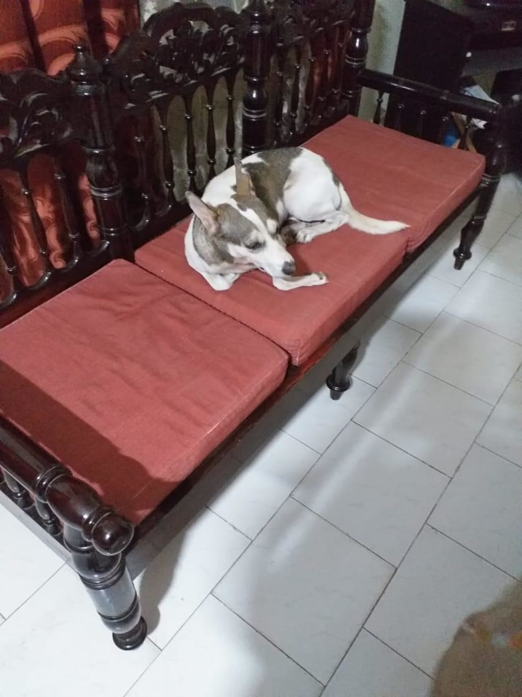 Once I bought him a red rubber tennis ball. We were trying to teach him how to play with it. He took it upstairs. Few other balls he would just try to chew them away. But this one he kept it on his bed upstairs. He was quite possessive.