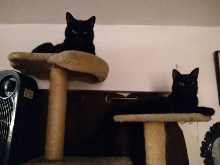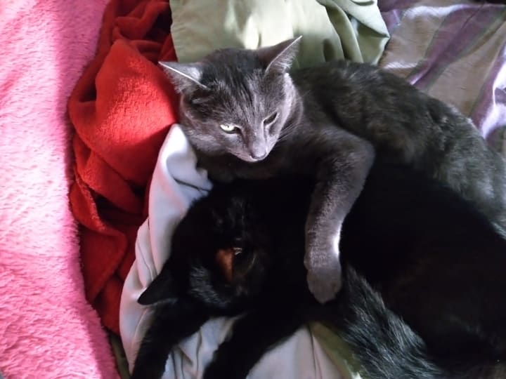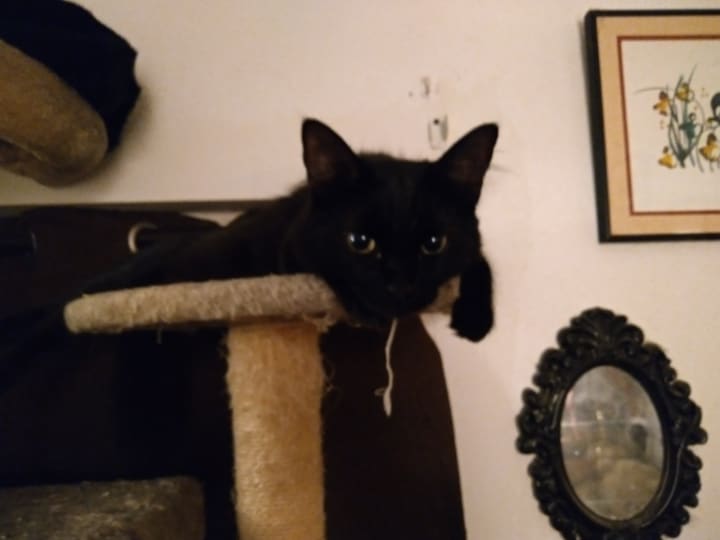 A few days later, I made my way over to his other napping corner. He actually deigned to associate with me now. So I was hopefully on a roll. I laid down again not far from him. A few minutes after opening his eyes and rolling over, he spoke." You fit in very well here, but you have much to learn." He stretched out his paws and yawned. " I was little like you are. But I didn't live here. I had another home, in another place. I had a loving human who took care of me. She was a human lady. She was kind, and loved me well. She even had a different name for me. I realize that here I'm Vincent. But in my other life, I had another name. I only wish that I could remember what it now. But my days were carefree like yours. Playing, sleeping, eating, and cuddling with my human mother, was how I spent my days too. I even slept with her at night in her bed. She also gave me the best toys, and the best treats. Our days were like this until she became sick. Humans do certain things when this happens. She began going more often to a place called the "doctor". Yes. Humans have them as well. I know it's not fun when they take us to them. That's fair, I suppose. As I was saying, she began staying in her bed for longer periods of time. I lay next to her, hoping I could make her better. But I could not. And more people I did not know came more often to the house. Then one night, she was taken away. And I never saw her again. For two days, I was in the house alone. No mother, no food, no love ever again. About two days later, one of the people who always came over before, came back. He had with him, a small house like the one our mothers now use to take us to the doctor. But that day, there was no doctor. I remember riding somewhere a short distance. Then the small house I was in, was put outside. The human made me come out. He got in his car, as I learned that those are, and drove away. I had no idea where I was. I had no idea how to get back to my house. I wandered for I don't know how long. The first night outside, I slept behind the nearest tree I could find. I was starting to get hungry, but ignored it as best as I could. The next day, I was confronted by a dog. He chased me up a tree. But before I could get away from it, I felt a pain in my ear. I don't know how long I stayed in that tree, before the dog finally left. I know you're still not sure about Roxxie, but trust me. Compared to what I've seen out there, she's a jewel." He leaned over, to show me his ear. Me and the others also speculated on how he received that injury too. "As I was saying", he continued. I can't tell you exactly how long I was alone, and on the street. I ate and slept wherever I could. I had a run in with a few other cats, most of the time which didn't go well. Until one day, I happened to be near where there a bunch of smaller humans. I sat and watched them for a while. Maybe one of them could help me out here. They were usually nice. The ones who came to see my human mother were all right. There was one little human girl that began walking on the sidewalk. I walked a slight distance behind her. As she slowed her pace, I walked closer to her. She noticed me eventually. "Hello kitty", she said. We walked together, until we reached what I would assume was her house. I kept walking next to her, following her lead. A human lady came out and spoke to her. The girl picked me up, and snuggled me. Oh. It felt so good to be petted again by a loving human. "Can we keep him", she asked. The lady looked at me. "You know how your father feels about another cat around here", she said. My newfound human still held me in her arms. "Please", she said again. That night, they made me a bed outside to sleep in. It was outside, but still a a place to sleep. They gave me some food, after making me the bed. I think I slept that night, like I hadn't in a while.