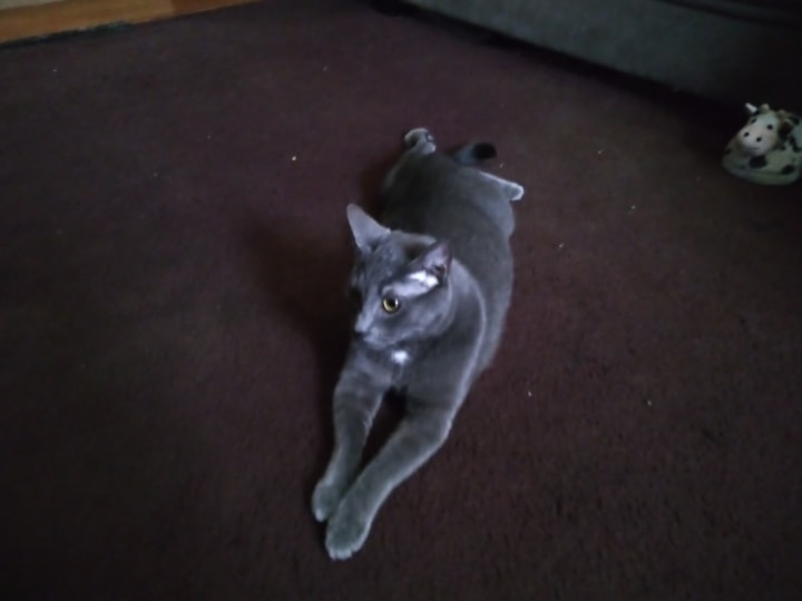 The next day, I ventured out from under the bed. If I was to make sense at all of my new home, I had to learn it. As I explored, I could hear the humans of the house talking to me. My new moms would pick me up, and pet me some more. They both had kind voices and a nice touch. Perhaps they weren't so bad after all. But the other cats were a different story entirely. There were 4 others. And there was another creature here called a "dog". Other cats were one thing to process. But the dog was another thing I did not expect, or know what to make of. I was told by my cat mother to be aware of them. But I as yet had to meet one face to face. Roxxie was her name, or short for Roxxie Lynn. She was what one called a Chihuahua, and Corgi mix. Yes. Humans often have different names for different things. Roxxie to give her credit, worked the hardest to help me fit in. I just didn't understand her, and was hesitant to give her a chance right away. The other cats I eventually got to know on an individual basis. There was a female black cat named Maleficent She was black, sleek, and oh so sophisticated. I knew I wanted to be like her when I grew up. The male gray cats, were also called the "boys". They had recently became "full gown" as the saying goes. Their names were Luke and Duke. They seemed to be the most affronted at my presence in the house. Duke was the larger one. And Duke was more slender. The oldest of our little group, was an older gray tabby. His name was Vincent Voncat, or Vinnie for short. He slept on chairs or the couch most of the time. He seemed more inclined to an observer of the goings on in the house. When I first made his acquaintance, I was not sure if the look he gave me was of curiosity or mild disdain.