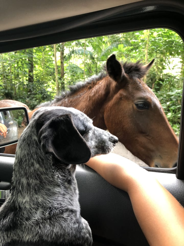Our adventures together have been truly epic. I brought her everywhere. To my favorite coffee shops, on every hike, to the ocean to see dolphins, on the river, to the jungle to chase waterfalls, and above the clouds among the Ironwood trees, and before she passed, we hiked up one of the tallest mountains on earth. She was my rock. Where ever she was, I was home.