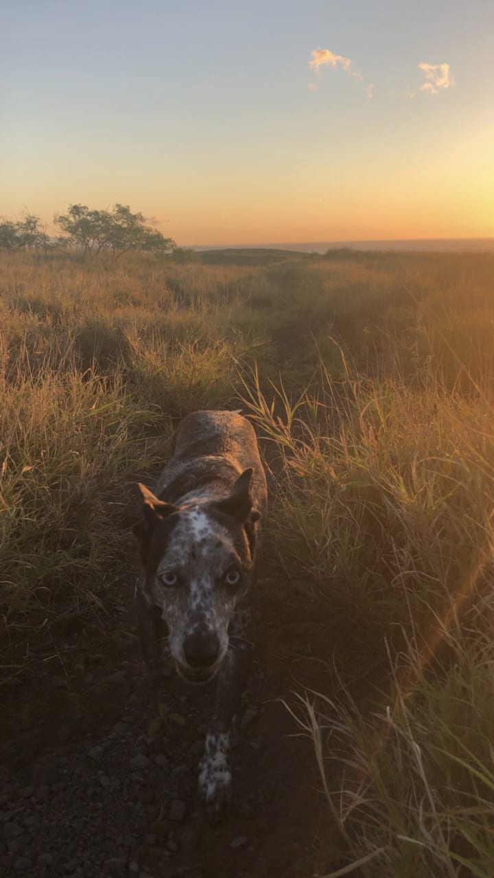 When we arrived home and brought her inside it didn't take long before she found a way to bolt out the door. She was a runner - and it was clear she wanted to be free. She had short legs but they were so fast! She ran through yards and under cars, down the block, and back to the house. When I got back to the porch I took a moment to catch my breath. I watched Hoku stand at the doorway with her tongue hanging out with a smile. From then on, I knew I wanted to give her a life where she could be the freest.