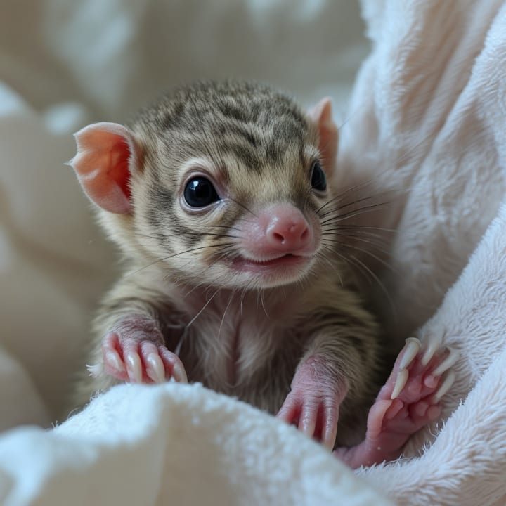 Late one June morning, I stepped out into the warm Wisconsin sun to find an unusual sight: a tiny, hairless creature nestled beneath the mailbox, lifeless at first glance. As I leaned closer, my heart jolted—its faintly striped tail twitched. It was a newborn raccoon, eyes still closed, soundless but alive. I scooped the cold creature into my hands, brushing away crawling ants, and warmed it against my chest. It stopped struggling and relaxed into my palm. I named her Glory.