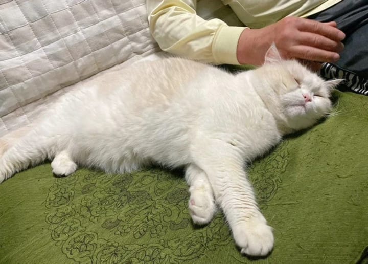 The kitten is now a member of the family and is 14 years old. Under the loving care of the whole family, he remains as soft and cuddly as he was when he was born. And the father's deep love for the cat has left the whole family overwhelmed and touched.
