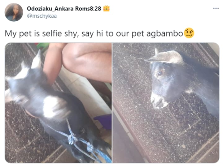 Nigerian twitter user, @mschykaa started quite the conversation when she uploaded pictures of her pet goat unto social media.