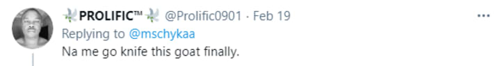Immediately she tweed it, the tweet started picking up wind and everybody began sharing their thoughts on the matter. The response was unanimous – ‘When are we killing this goat and using it for soup’.