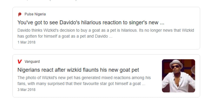 Wizkid got a pet goat and once the internet heard that, the news immediately started flying around the town and it became top news during that period.