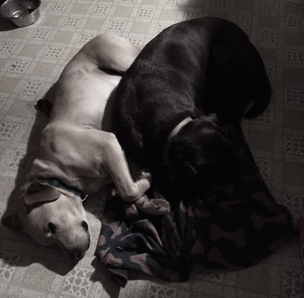 Bo and Myli were inseparable. They always had to be within close distance to one another. They slept together on one bed, even though they each had their own. They shared the same food bowl, even though they each had their own. They would find a large stick and lay down side by side to each chew on an end. They would watch the flock of chickens, turkeys, ducks, and an occasional piglet like they were watching their own kids. They were literally like that old married couple that everyone dreams of being.