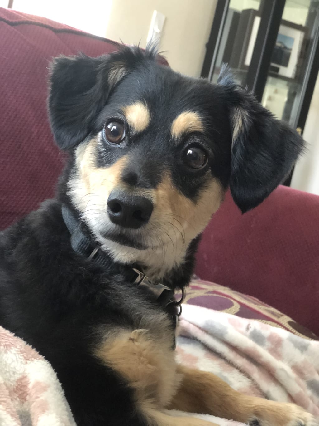 My fondest memory is when I finally had the chance to wind down for the day. I would sit on our family room sofa and prop my feet up. Chewy would grab a bone, jump on the sofa and tap my leg with his paw because he wanted to lay on my lap and gnaw on his bone. Though I always gave him permission by tapping twice on my leg, he would not do it unless I placed the blanket over my legs. Therefore, he would continue tapping my leg until I grabbed the blanket. Once I grabbed the blanket, his curly tail wiggled with excitement, and as soon as I placed it on my lap, Chewy would accommodate himself. Often times he'd fall asleep on my lap. I loved those moments and miss them so much.