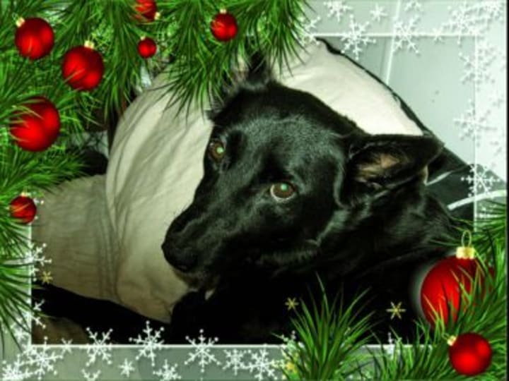 Here I am at Christmas. That was always a big day for me because I got a big sock shaped thing that had treats and toys inside! Then later I got turkey or beef, depending on what mom cooked that year. I am one happy dog!