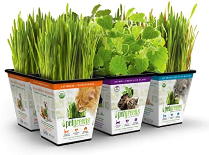 The earth was created with health benefits for animals when they eat from it. I had dogs and cats when I was younger who would routinely consume grass. My grandma said it was their medicine and helped heal their health issues. I recently adopted a 2-year-old cat from the local ASPCA shelter. I was concerned about the fact that he would be indoors all the time. While standing in line this morning at Pet Smart, I noticed a product that will benefit indoor kitties. There were two potted plants called Pet green. One was catnip and the other wheatgrass.