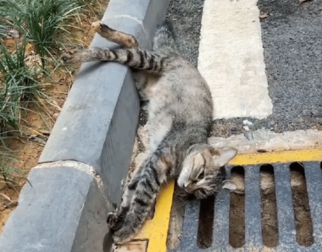 A stray animal rescue team often rescues stray animals in a local stray animal rescue group found hungry for help message, a monetize in the group for help, on a helpline roadside, a poisoned stray cat is dying and urgently needs people's help. So, the person in charge of the stray animal rescue team immediately arranged for volunteers to rush to the scene after seeing the information, and soon found the stray cat that was already dying according to the information provided by the monetizing.