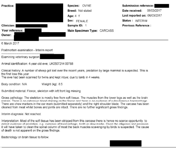 Elsewhere, a sheep farm repeatedly targeted by an unknown predator, lost over 36 sheep at the rate of approximately 2 killed per week.