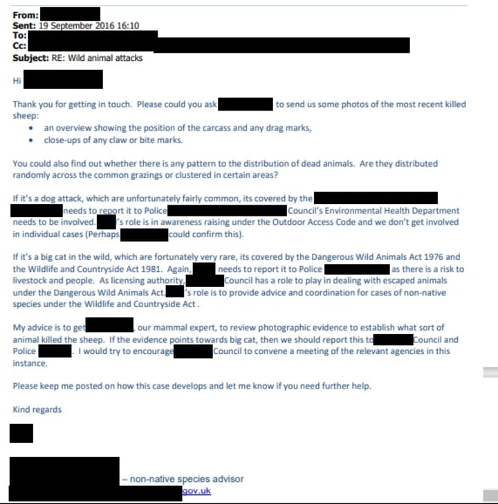 The leaked documents include several previously unreleased photographs, and a detailed email chain between various government agencies (including the police), which proves they KNOW big cats are living wild in the British countryside, and actively investigate big cat reports, whilst also simultaneously SUPPRESSING THE EVIDENCE.