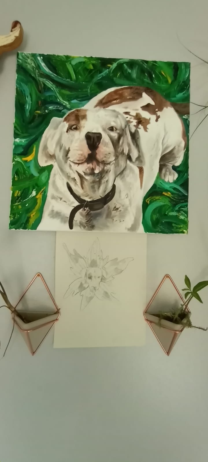 Oh that's right, I forgot to mention that I'm a visual artist first and writer second. My practice is growing in the sense that, what I write also informs the painted work and the full experience of my art is the painting coupled with the writing. There are times where museums or other art related jobs need my help and skillset so when those moments happen I have to step away from the office, in order to get the job done. Ranger usually joins me outside while I'm painting, writing or drawing.