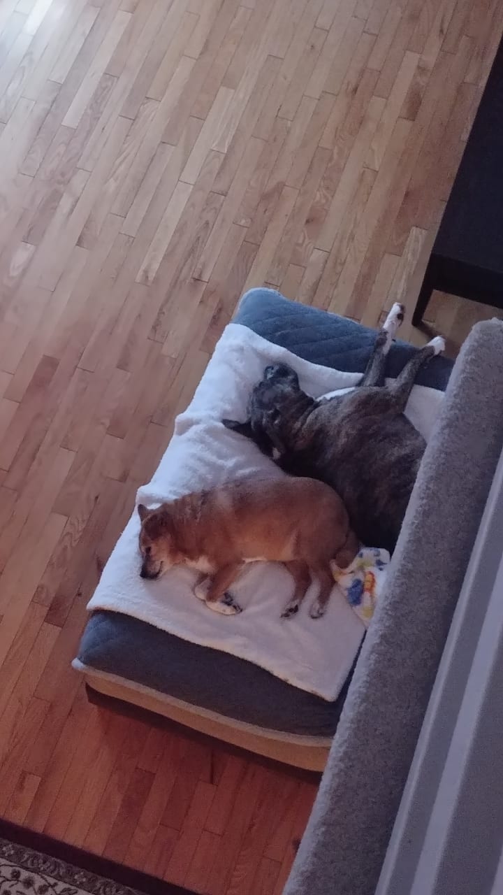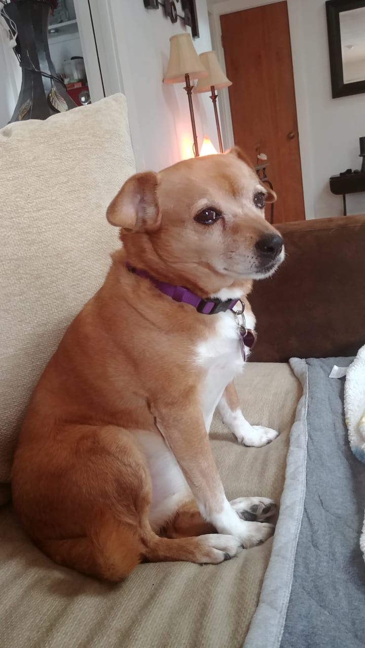 Riddles is a shelter dog that was said to be 3 years old. The shelter said she had heartworms and needed to undergo treatments if anyone adopts her. At the time, it had been a year since a beloved tuxedo cat in our household had passed. We ended up looking for a small dog that could be mine even though we still had two cats. Well instead of bringing home just one dog, we ended up with two. We found out at the vet visit after we adopted these two dogs that Riddles, the smaller dog, had more medical problems that were possibly caused due to having heartworms and that she was more like 8 years old rather than 3 years old. We adopted her regardless. Nyla, the boxer mix that was adopted with Riddles, had severe hip problems, but she was too young and still too mobile to do surgery on.