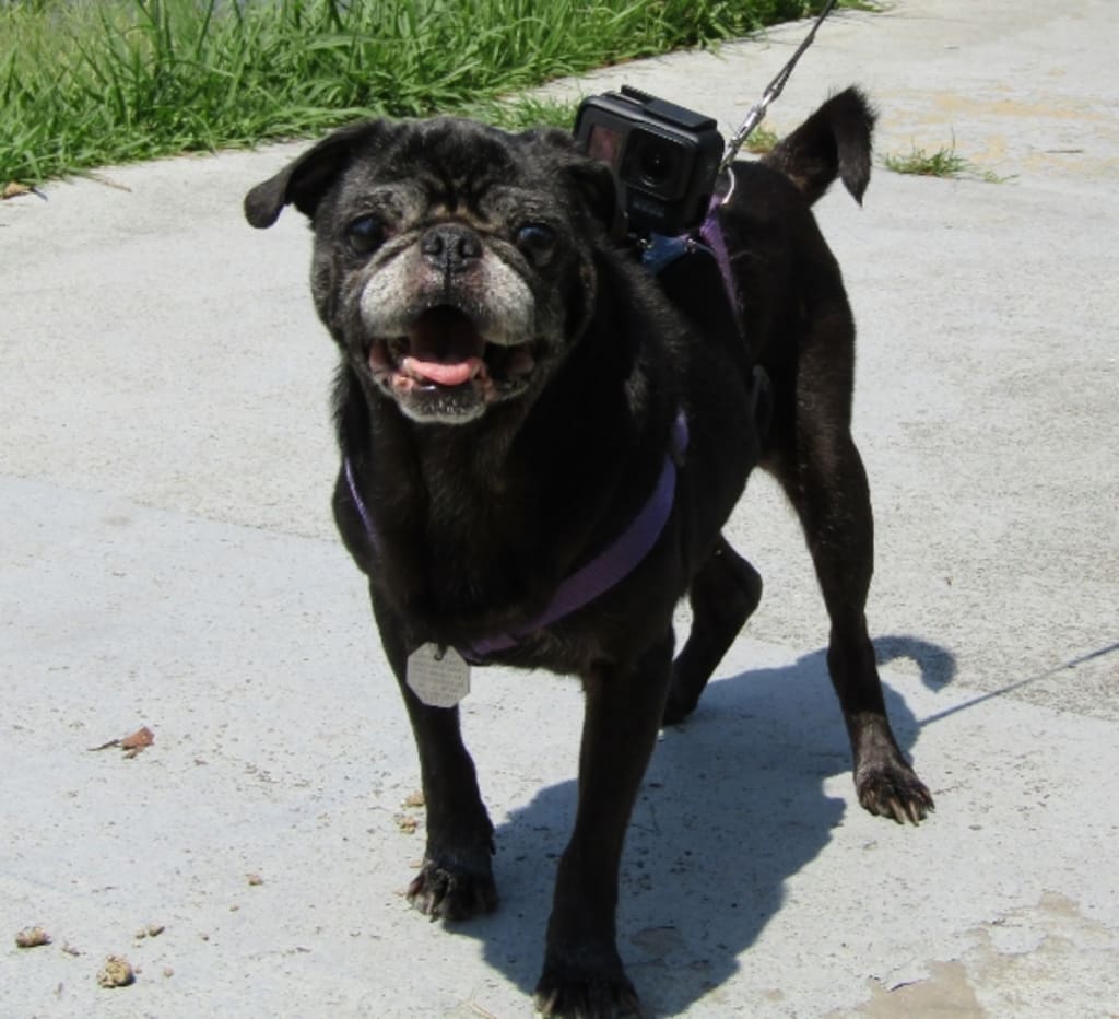 She went with us camping, and obediently sat on her bed in the back seat for all of our car rides, whether to the dog park, Petsmart, a day trip to the people park and hikes, or a 3.5 hr ride to her last camping trip spot. Though it was a 2hr trip She always greeted Dad in Law (hubby's dad) with excitement and joy. (I think she knew he would sneak her treets when he thought I wasn't looking) He always advocated for her getting more treats as she was always fit, and not a lazy fat pug like a lot of pugs get.
