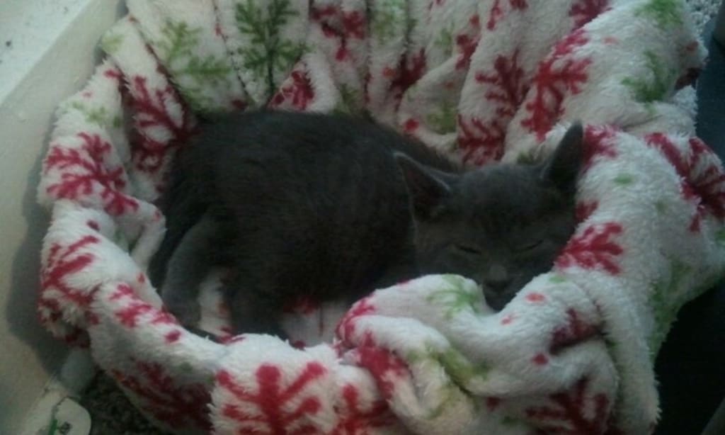 After she got a shot and some medicine that he already prescribed her, I take her home. She obviously cried all the way home, luckily it was a short ride. I lay her on my bed. She seems groggy. After a few hours of meowing and cuddling, I give her the medicine. I hated every minute of it. I had to put drops in her eyes to keep them from closing and had to give her doses of medicine through the mouth. I finally give her some soft food afterward to get rid of the taste. She actually ate a good portion. She stopped meowing! I was so happy to not hear tiny screams for help. I bought her this cute Christmas blanket that I found on sale. I put it in her basket and laid her in it. I rubbed her back and little forehead. I wanted so badly for her to just feel safe. She closed her little eyes and fell asleep. I took a picture immediately. Her tiny purrs made me bawl my eyes out. As she slept, I tried so hard not to wake her. I'm sitting there crying because I almost lost her.