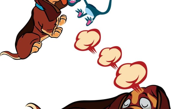 Suddenly the dog rolled on the ground and did a little jiggle.