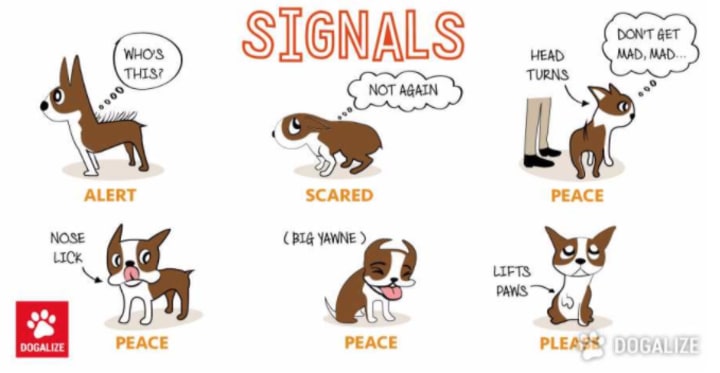 Dogs fear signals, as well as anxiety and stress, are more subtle than joyful ones and can often be misinterpreted. Some are: