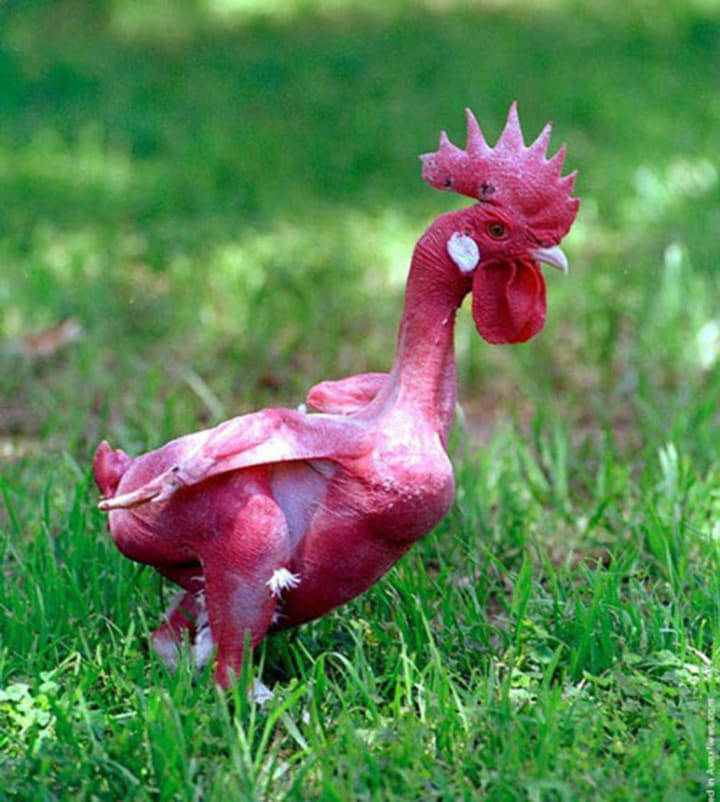 Variations in DNA codes can do some pretty cool things to animals. The Featherless chicken is a hybrid chicken variant that originated at the Hebrew University in Israel.