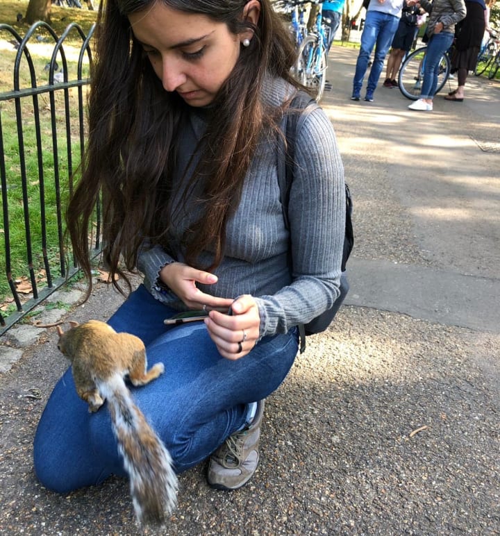 Last year, I was studying for a master's degree in London. One of my favorite things was going to the park to watch and feed the squirrels! They are just lovely, with their little jumps and fluffy tails. It's hard not to love them. Can you relate?