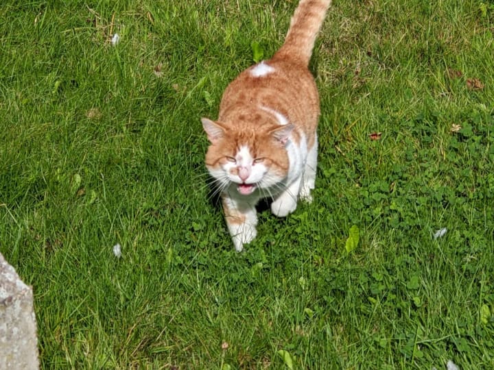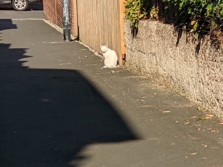 I take pictures and videos of cats with my Google Pixel 4XL but sometimes I will see them a distance away and wonder if they will stay and pose or if they will run off. This morning two cats, I saw at a distance decided that they were not going to stay round to let me photograph them more closely, but I did get a couple of distance photographs before they took their leave.