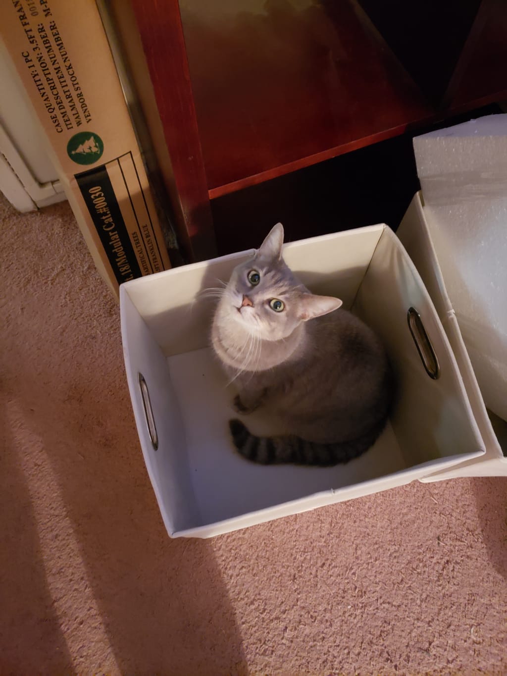 I held on to her until I was able to pick her up like a baby and I carried her into the bathroom. She was scared and started flipping out to where I had to let her down before she jumped out my arms and possibly hurt herself. My sister and I waited outside the bathroom and I texted my mom telling her that we finally got her. A few moments later, she came back up with one of our cat carriers.