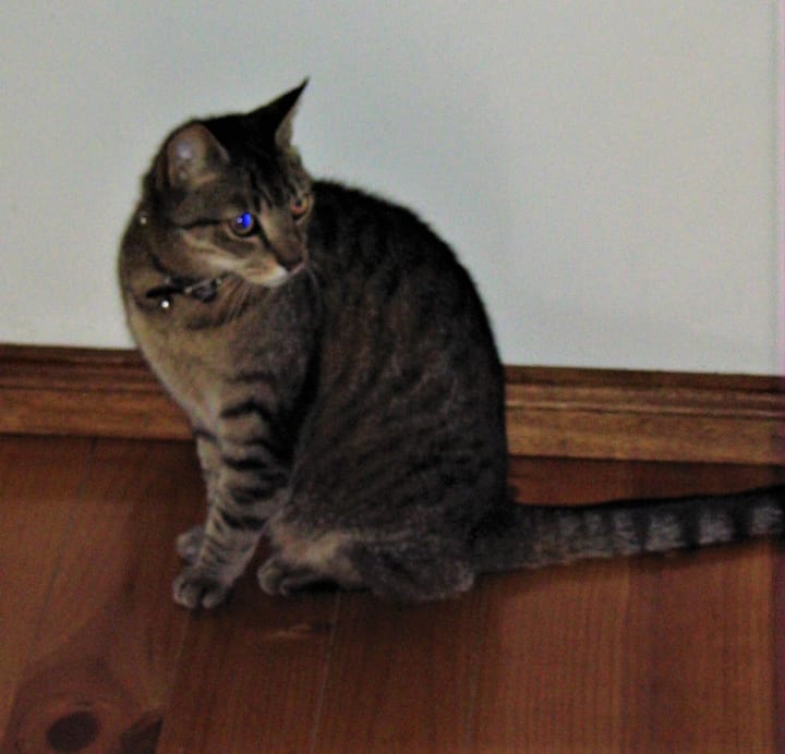 Merri and Ginger were a bit out of sorts once Pippin had gone, as Pippin was the alpha. Merri would have loved to take over the role, but in her condition, it was 15 year old (76 human years), Ginger that took over. For a few nights, Ginger helped fend off an annoying cat that had been trying to attack Merri. She didn't really have to fight, as Margaret or I would usually step out and freak out the grey cat.