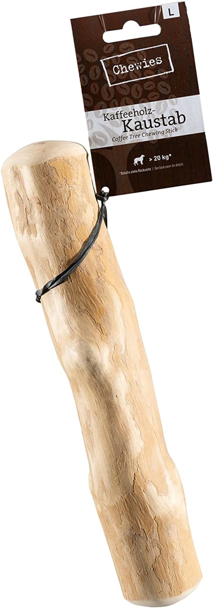 The chew stick for dogs made from extra hard coffee root is a unique and sustainable dog chew toy that not only satisfies your dog's natural chewing instincts but also helps clean their teeth and strengthen their jaw muscles. Made from 100% coffee tree wood, it is safe for dogs to nibble on, and the soft fibers that may be nibbled over time pose no danger if swallowed. The dog bone is suitable for all dogs and comes in three different sizes, making it a perfect fit for all breeds. The chew wood provides an exciting challenge for your pets and is particularly popular with puppies during the changing teeth stage. Additionally, this dog toy is eco-friendly and good for the environment, making it an excellent choice for pet owners who want to reduce their environmental footprint. Pets Nature in Germany offers this high-quality and safe chew toy with years of experience and competent customer service, demonstrating their love for animals.
