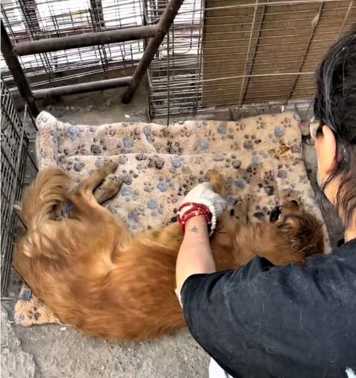 But Ms. Ding's kindness made her gradually take off her guard, and after only one day, Flowing Fire was already willing to let Ms. Ding pet her, and her good-natured, docile and cautious look brought tears to our eyes.