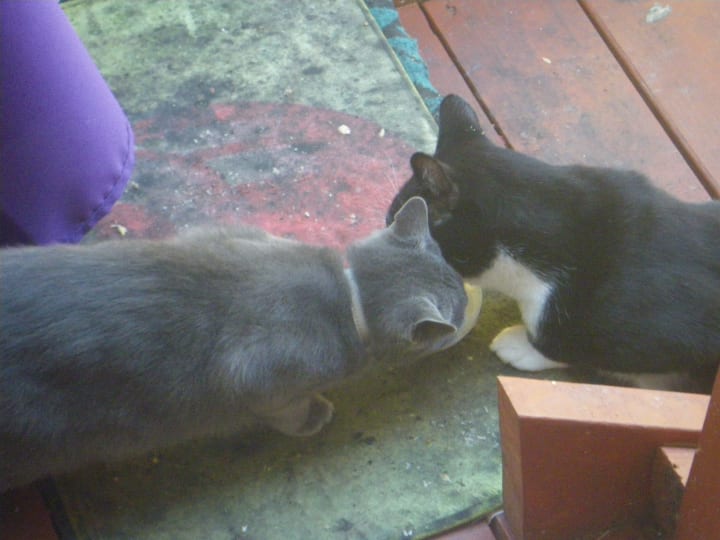 My journey through the world of cats and kittens has been a learning experience. A little over two years ago my friends had a lovely cat named Oreo. While she was still little she came upstairs since my friends live in the apartment below to visit me often. At that time my senior cat Sid, who was 13 got used to this little lovely creature coming to keep his Mama company.