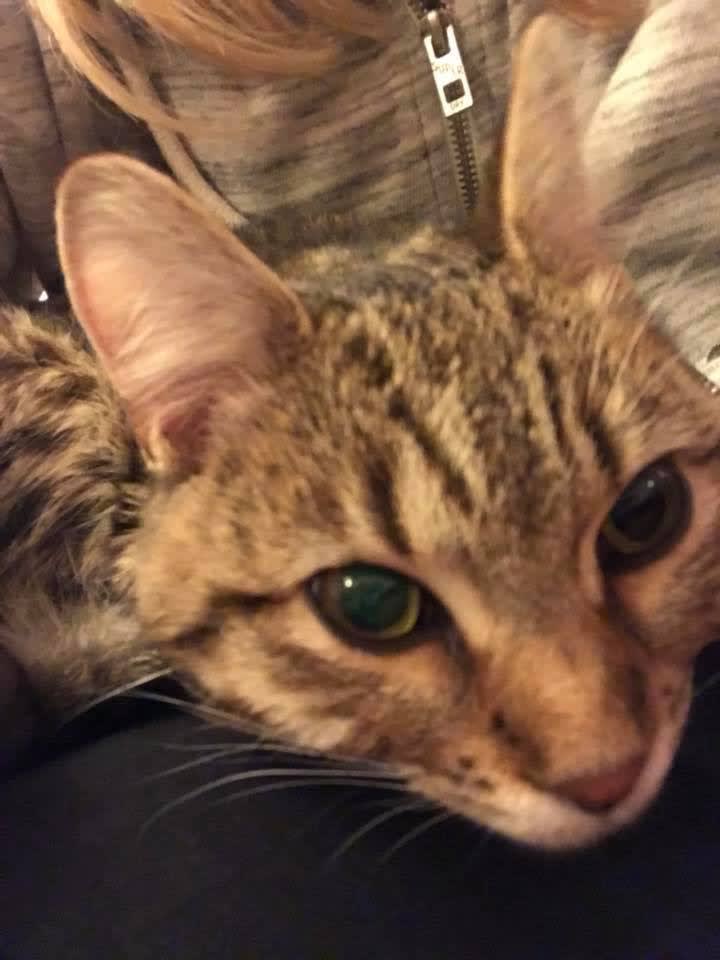 She is fully healed and almost 1-year-old in a month and two days! She’s had us in an emotional rollercoaster from day one! She goes outside a lot more now, sometimes out all night, and she’s so vocal. I have read that you can train bengals like you can with dogs!