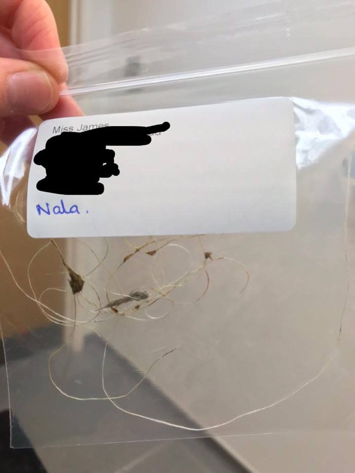 Well, I got a call from the vets saying it wasn’t good news that she had to go into surgery straight away as they found a long string going from her tongue right through to her bum! OMG. I was constantly checking my phone for any news on her after that. They phoned me again and it was a success; they made six incisions and managed to get the whole thing out! When I went to pick her up they showed me what she had swallowed! OMG this naughty kitten. It looked like a long piece of thread. I have included a picture.