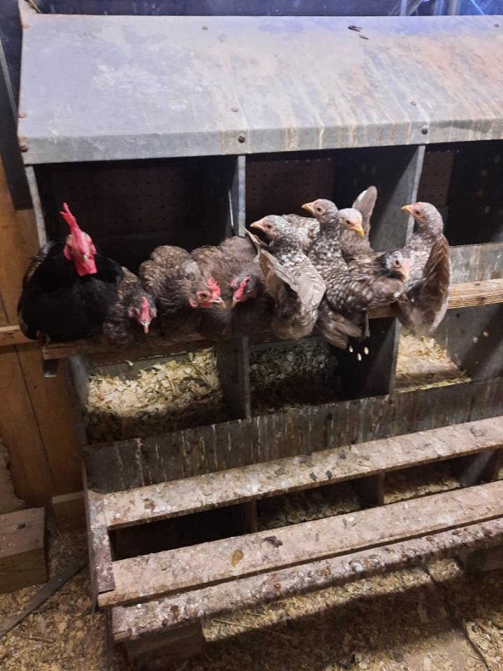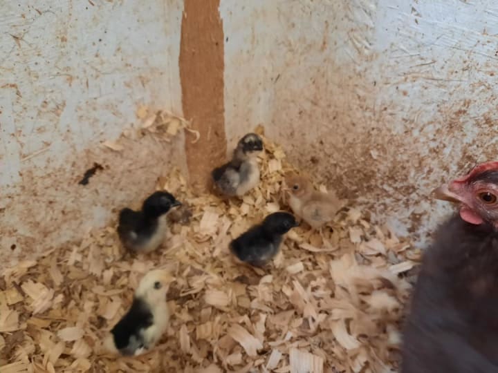 At this moment, I have about eight hens. I was so excited when I got my first eggs. They were so tiny. You wouldn't even believe how small they were. Then, one went broody. Then, another. I got six little chicks out of them. We still have five left, and they are doing wonderful.