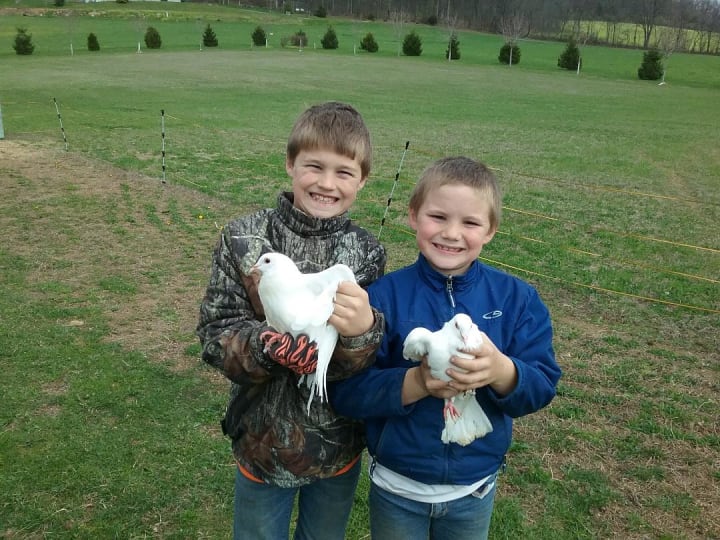 Cody wanted pigeons. He fell in love with them at the auction, and even though they are expensive, we decided to let him have a few.