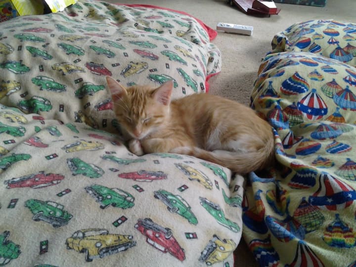 No farm is complete without a rotten cat. Ours happens to be named Jumper. The boys love bugs, frogs, and all things gross, so that is how he got his name.