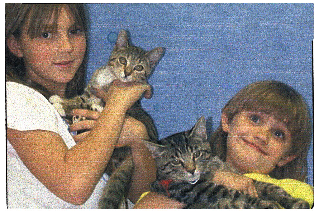 I was about 6 when we got our first cats. After losing our pet rabbit, we decided to look for a kitten or two. It took a long time until finally, in my absence, my older sister found the perfect pair at the SPCA. I remember coming home from my dad's place to find food bowls placed on the kitchen floor. When I got down to the den, there on the couch with my sister were two little tabby kittens. They were brother and sister. My sister had claimed the smaller blonde girl, while I settled for the bigger, darker tabby boy. The girl's name was originally Peaches due to the orange spot on her head, but my sister renamed her Mittens because of her white paws. As for myself, after hearing the tall tales of Figaro 1 and 2, whom I've never met, I decided to give my kitten the name Figaro III.