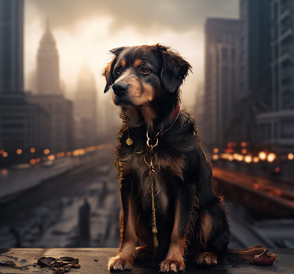 On the edge of a town long forgotten by time, where train tracks were swallowed by weeds and old factories stood like skeletons of a life once lived, there was a dog. His name was Milo. No one remembered when he first appeared. Some said he wandered into town during a storm. Others believed he’d always been there — as much a part of the streets as the cracked pavement and rusted lamp posts. What people remembered, though, was the small, red collar around his neck and the tiny metal bell attached to it. It barely made a sound anymore. It was scratched, dull, and silent — much like Milo himself. He was a quiet dog. Never barked, never chased, never begged. He simply sat, every morning, at the same street corner in front of the old station café. He watched the road like a soldier on guard, eyes fixed on the horizon, ears alert but calm. Some thought he waited for his owner to return. Others assumed he had been abandoned there, and just never moved on. But no one really knew. Over time, people stopped asking. What they did know was this: Milo had a kind of stillness that made you pause. Teenagers who used to laugh loudly while passing by would quiet down near him. Elderly folks left scraps of food beside him without saying a word. Little kids approached him gently, ringing the bell on his collar with innocent curiosity. Milo didn’t flinch. He didn’t wag his tail. But he didn’t move away either. He accepted kindness like he accepted rain — without demand or expectation. Winters came, and Milo remained. Summers scorched the sidewalk, and he still sat on that same corner. As the town changed, Milo didn’t. Shops opened and closed. Families moved in and out. But he stayed. Watching. Waiting. And though the town forgot many things, it never forgot Milo. Over the years, he aged. His fur turned more gray than brown. His legs shook a little when he stood. His eyes, once sharp and searching, became misty. But still — every morning — Milo walked slowly to his corner, sat down, and stared at the road. One morning, he didn’t come. At first, no one noticed. Maybe they thought he was just sleeping in the alley, or resting under the café awning. But by noon, a little girl tugged her mother’s hand and asked, “Where’s the dog with the bell?” The town started to look. Quietly, as if not wanting to disturb the truth they feared. They found him beneath the bench where he used to nap in the afternoons. Curled up. Peaceful. The red collar still around his neck. The bell still there, unmoving. He had gone quietly, just as he had lived. A boy from the neighborhood — the same one who once brought him water every summer — picked up the bell. He placed it in a small box, wrote “Milo” on the lid, and kept it on his shelf. He didn’t say much, but he whispered as he closed the lid,