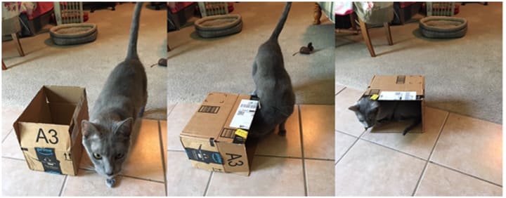Before he left this earth, though, Emmett continued to inspire. We had to move recently but Emmett was fond of exploring his new home and with a simple grace, experiencing whatever was going on. (I forgot to mention earlier that his brother Elmo passed in 2019 and one of the older cats left in 2020, and my wife passed in early 2021. For the move, it was me and two cats, the older Russian Blue named Wesley, and Emmett.)