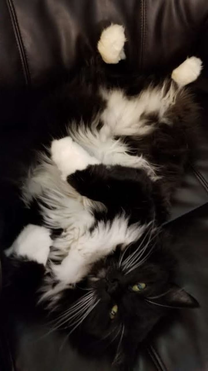She was a very grumpy yet cuddly cat. If the environment was made perfect for her (sitting with our feet up, blanket covering all of our bottom halves, no brush in sight), she would jump up and knead us. Sometimes, we even got to pet her! We were never allowed to move, though.