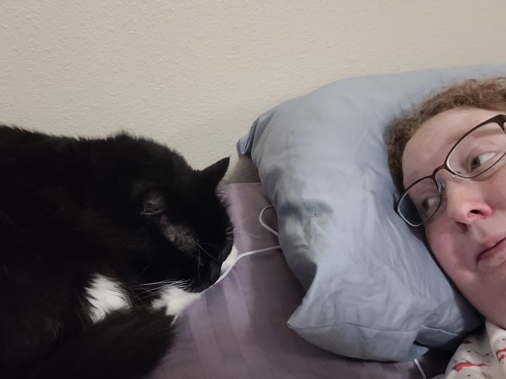 She no longer comes running when I come home. She has trouble getting up from her bed of choice now. It's ok, I go and find her and give her a good pet until she starts flicking her tail. She no longer tells me too much about her nights...just the highlights. I let her sleep with me more often now, so there is less to talk about anyway. She curls up by my face, and wakes me up by booping my nose with her nose if I snore. She even forgives me for holding her down and forcing pain medication in her mouth when I notice she is in pain.