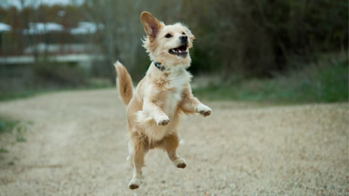 Have you ever seen a dog running around, jumping up and down when they are being fed, or chasing a ball? That's when they feel happy. Life is too busy that we forget how to enjoy the happiness and joy when we succeed. So don't hesitate to jump up when you feel happy. Surely, the joy will be doubled.