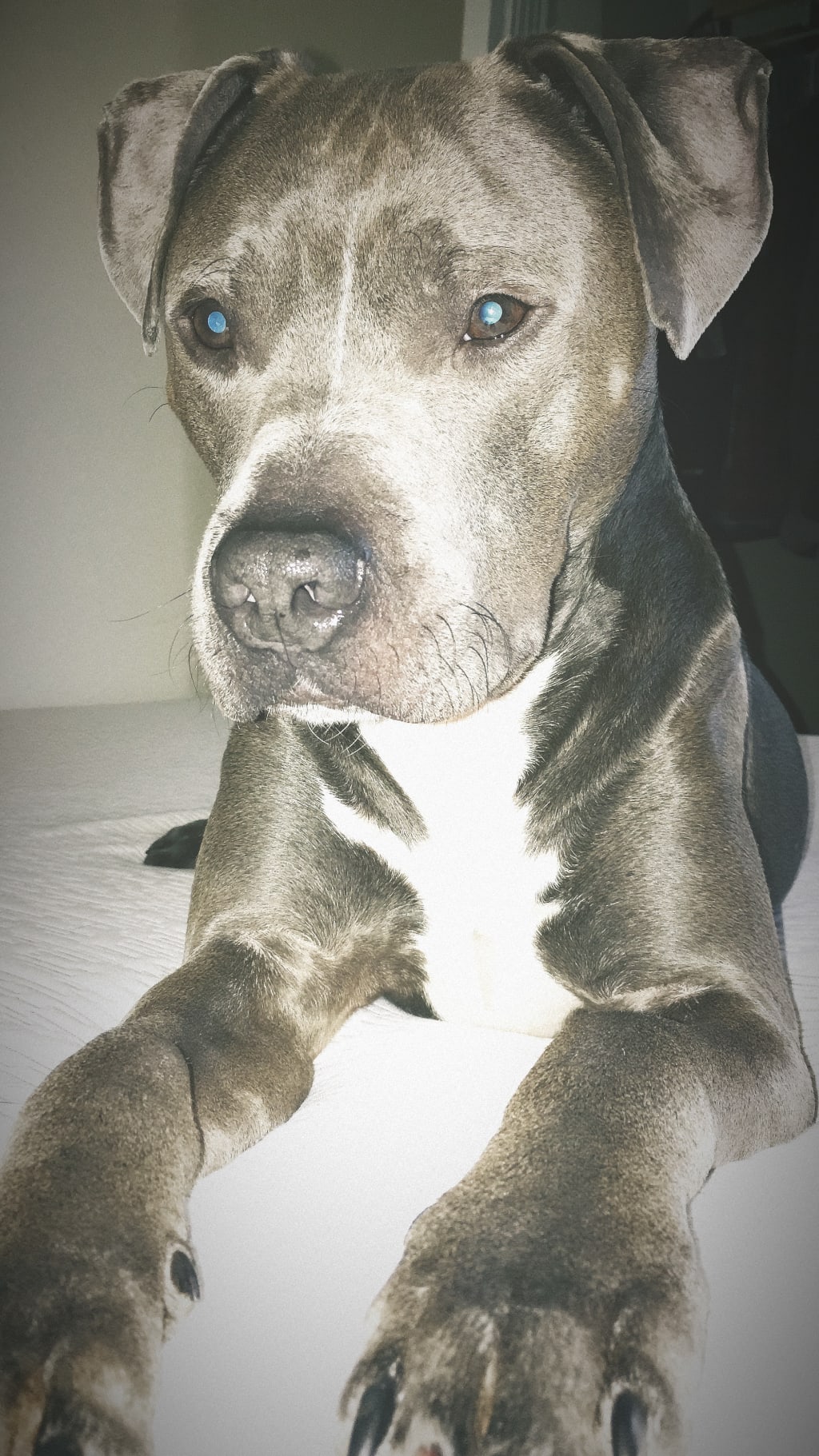 It really bothered me as a dog owner who has always loved the “black list” breeds for them to be so looked down upon. It’s time to make a change. You can't tell in the picture above, but right where a muzzle would have laid, he has a small hairline growing in a different direction, as if he had to wear that muzzle for long periods of time. He also has small wounds on the tips inside his ears that are just now healing after having him for almost 6 months, and he has scarring on the back of his legs. But with a forgiving heart, he loves everyone, and I mean everyone, unconditionally! They are the most forgiving breed, yet they're the most unwanted breed.