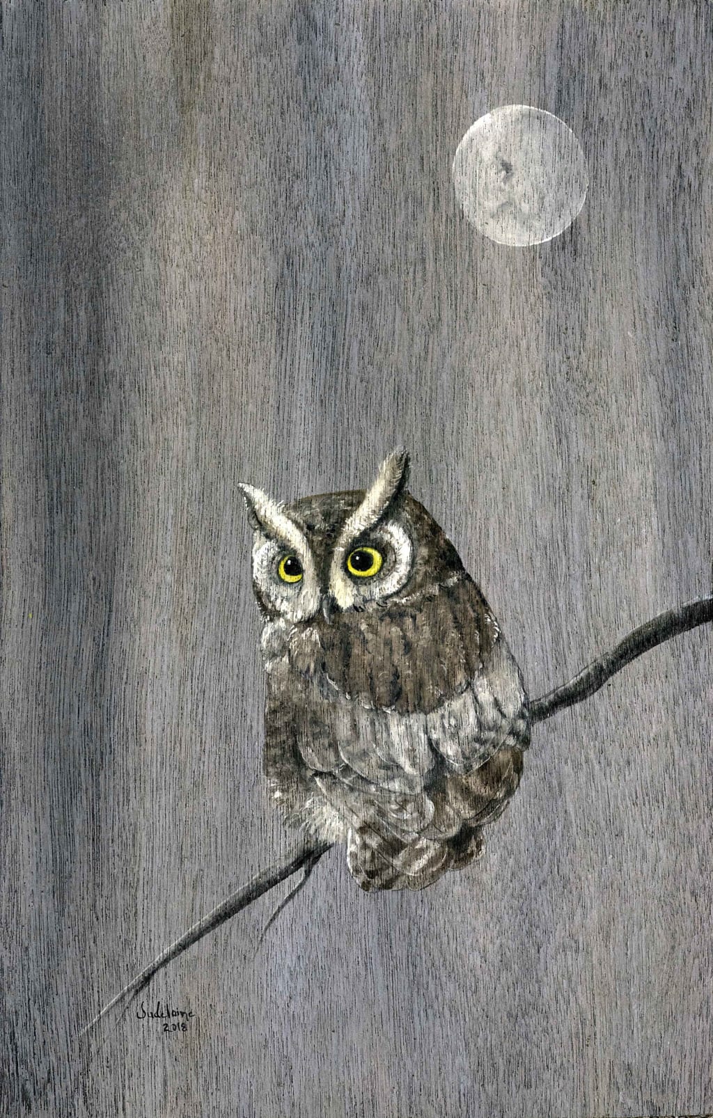 Balancing herself on the ladder, feet spread and leaning her body against the trunk, she pulled on her father’s gloves before reaching with her right hand into the hole. When she touched the soft body at the bottom of the hole, a thrill raced through her fingers and into her heart. “Don’t worry,” she whispered, as she gently lifted a tiny screech owl from its home. “Don’t be afraid. It’s just me. Remember?”