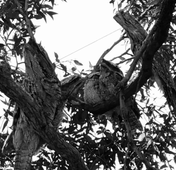 Though the Hogwarts gig might be out of their reach, the resume of a tawny frogmouth would bear a lot of similarities to the owls they are mistaken for. Like owls, tawnies are nocturnal hunters of rodents and insects. They boast specialised sensory feathers around the face, which aid them in detecting their prey. They can lay a claim to that supposed wisdom of owls, too. Who wouldn’t concede that employing top quality camouflage to avoid unwanted attention is a wise tactic (or be tempted to use the same upon encountering an odious acquaintance in the wilds of the supermarket)? Tawnies doze through the day, secure in the knowledge that to even the keenest eye they appear, at first glance, to be a part of the tree they’re in.