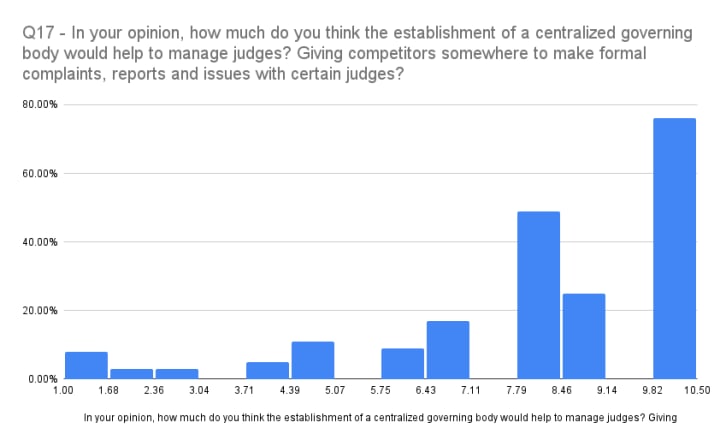 - A governing body would help a lot I feel as someone needs to be in charge of judges.
