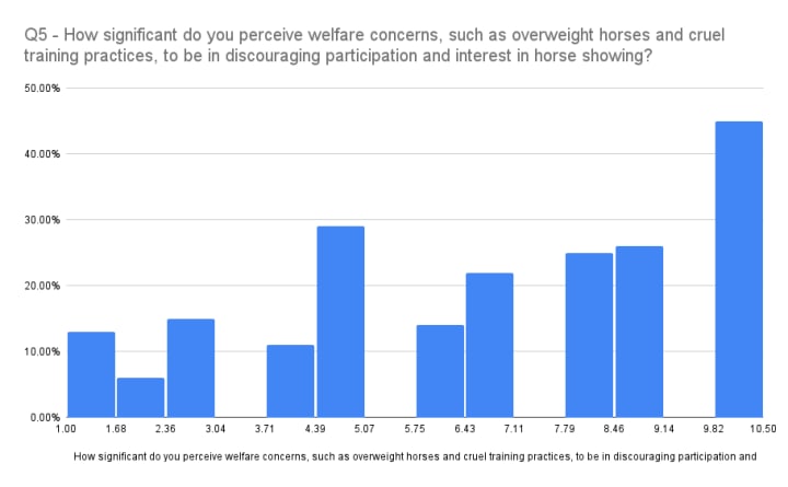 - Welfare concerns, including overweight horses and cruel training practices (50%)