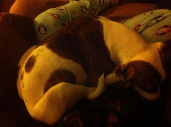 When we were standing in line waiting to pay for her, she was wagging her little tail and giving me kisses and I knew that this was going to be my forever dog. I remember bringing her home and she would sleep next to me in bed all night and cuddle under my neck. Of course, with every puppy, there will be accidents. I can't count how many times she would potty on my bed and how mad I would get, but I had to remind myself: She's just a puppy, a baby, she has to learn. So step by step, we learned together.
